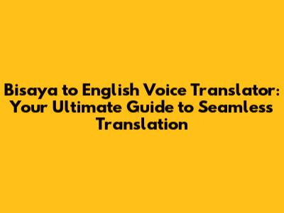 Bisaya To English Voice Translator: Your Ultimate Guide
