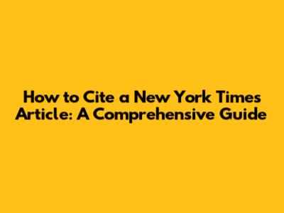 How To Cite A New York Times Article: A Comprehensive Guide