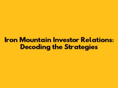 Hey guys! Ever wondered about Iron Mountain's investor relations? It's like a secret language, but once you crack the code, you get a much better understanding of the company. It's super important for anyone looking to invest or just learn more about this industry leader in records and data management. This guide breaks down everything you need to know, from the core functions of investor relations to how to find key information and use it to your advantage. Let's dive in and explore what makes Iron Mountain tick, shall we?