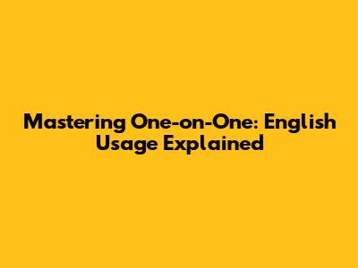 Mastering 'One-on-One': English Usage Explained