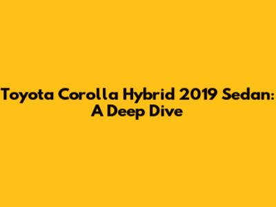 Hey guys! Let's dive into the Toyota Corolla Hybrid 2019 Sedan, a car that's been making waves with its fuel efficiency and reliability. If you're in the market for a dependable and eco-friendly vehicle, this might just be the one for you. We're going to cover everything from its performance and features to its fuel economy and overall value. So buckle up and let's get started!