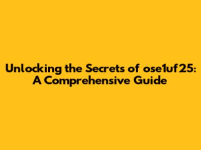 Unlocking The Secrets Of Ose1uf25: A Comprehensive Guide
