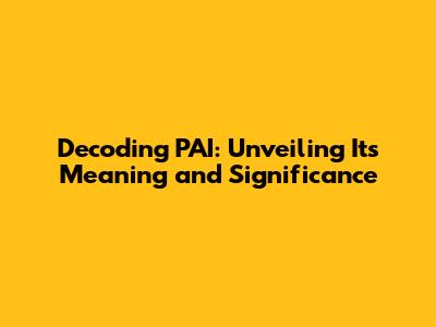 Unveiling PAI: Decoding Its Meaning And Significance